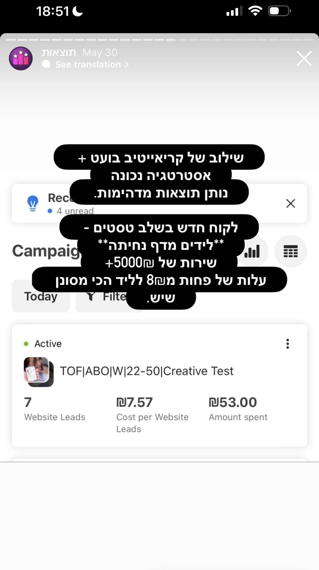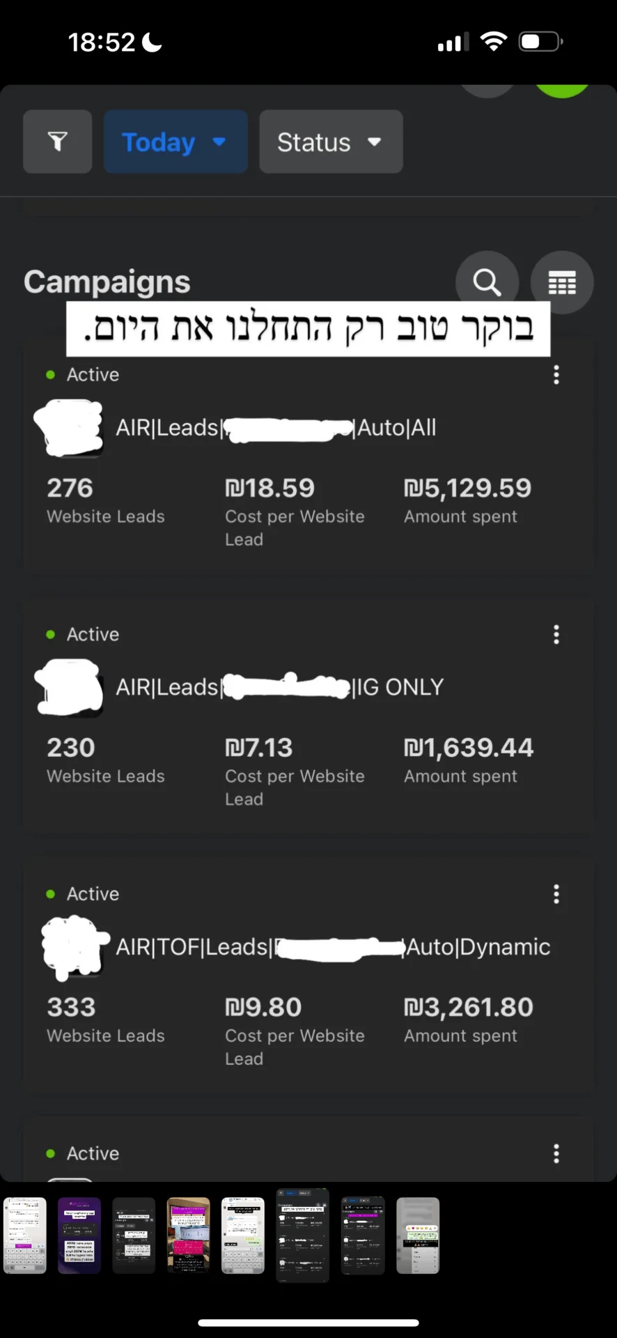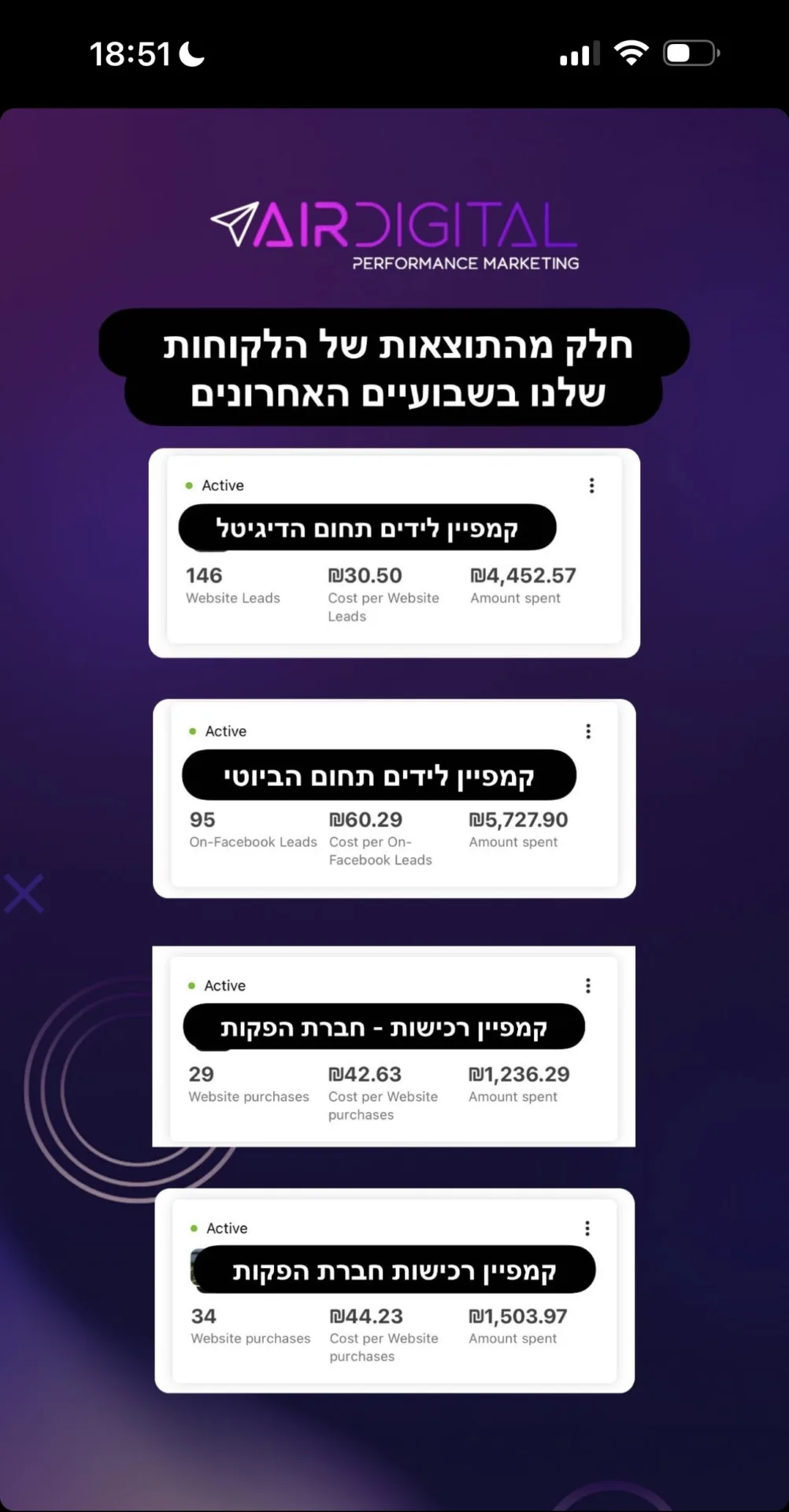 "אפשר לדבר שיש לי קמפיינרים מלכים שהכניסו לחברה היום 800 ש"ח בהוצאה של 80"